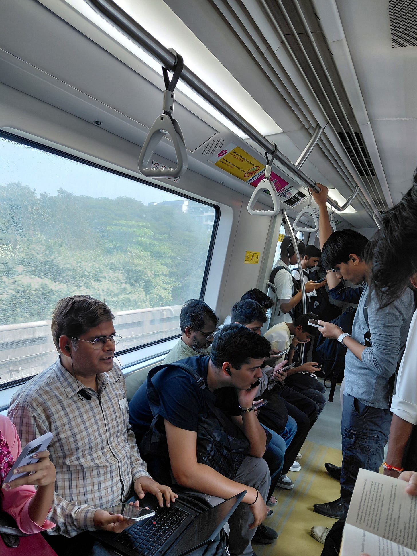 El metro de Mumbai circula por arriba de las calles y la primer línea fue innagurada en 2014. Para dar contexto, el primer metro de Buenos Aires fue innagurado en 1913 con la línea A. El metro de Mumbai es bastante más caro que el tren y a diferencia de este, no podés entrar si no tenés el correspondiente boleto. El ambiente es más de oficinistas, cada uno mirando su celular. La red de metro es muy limitada pero están en planes de expandirla.
