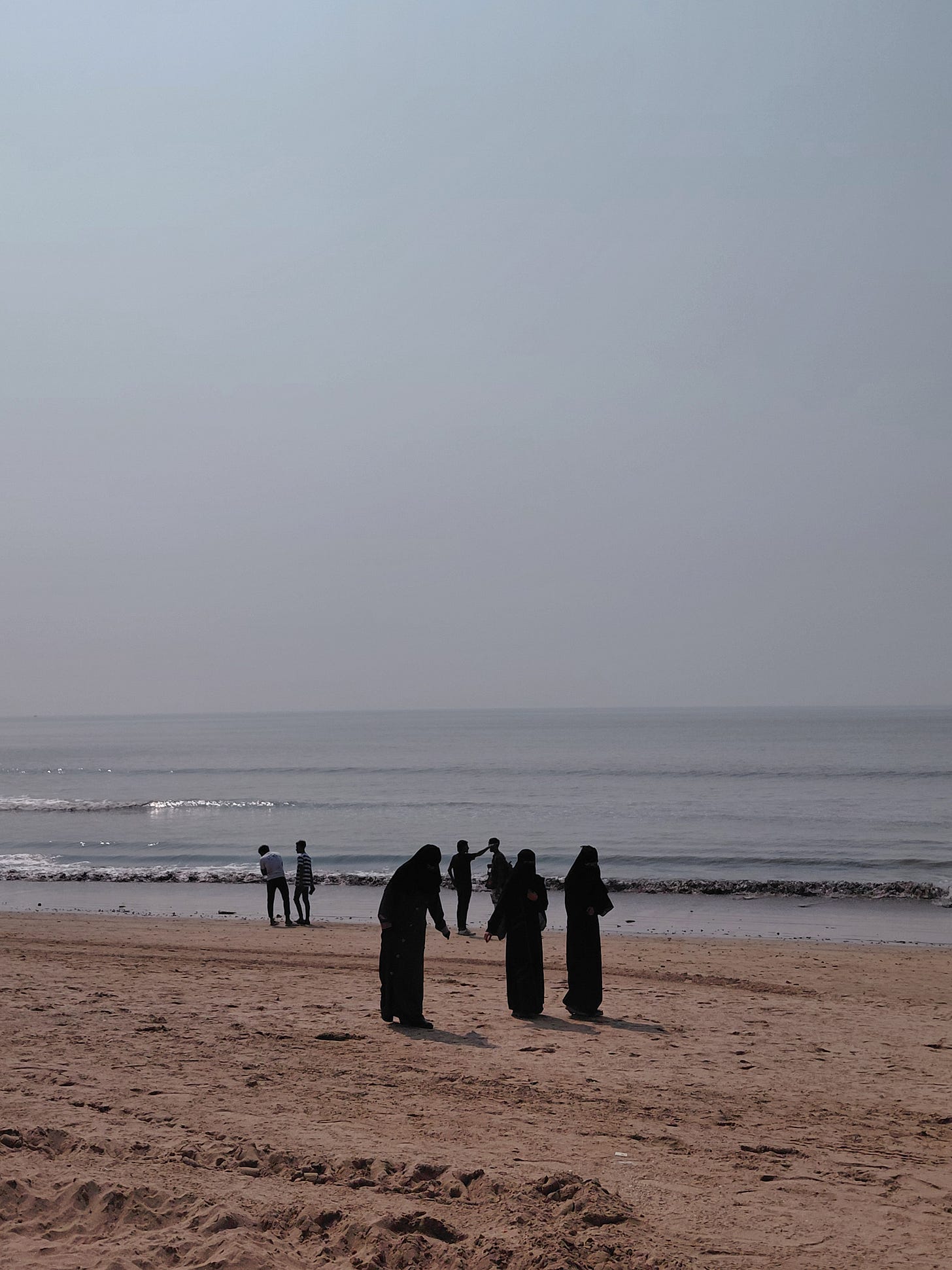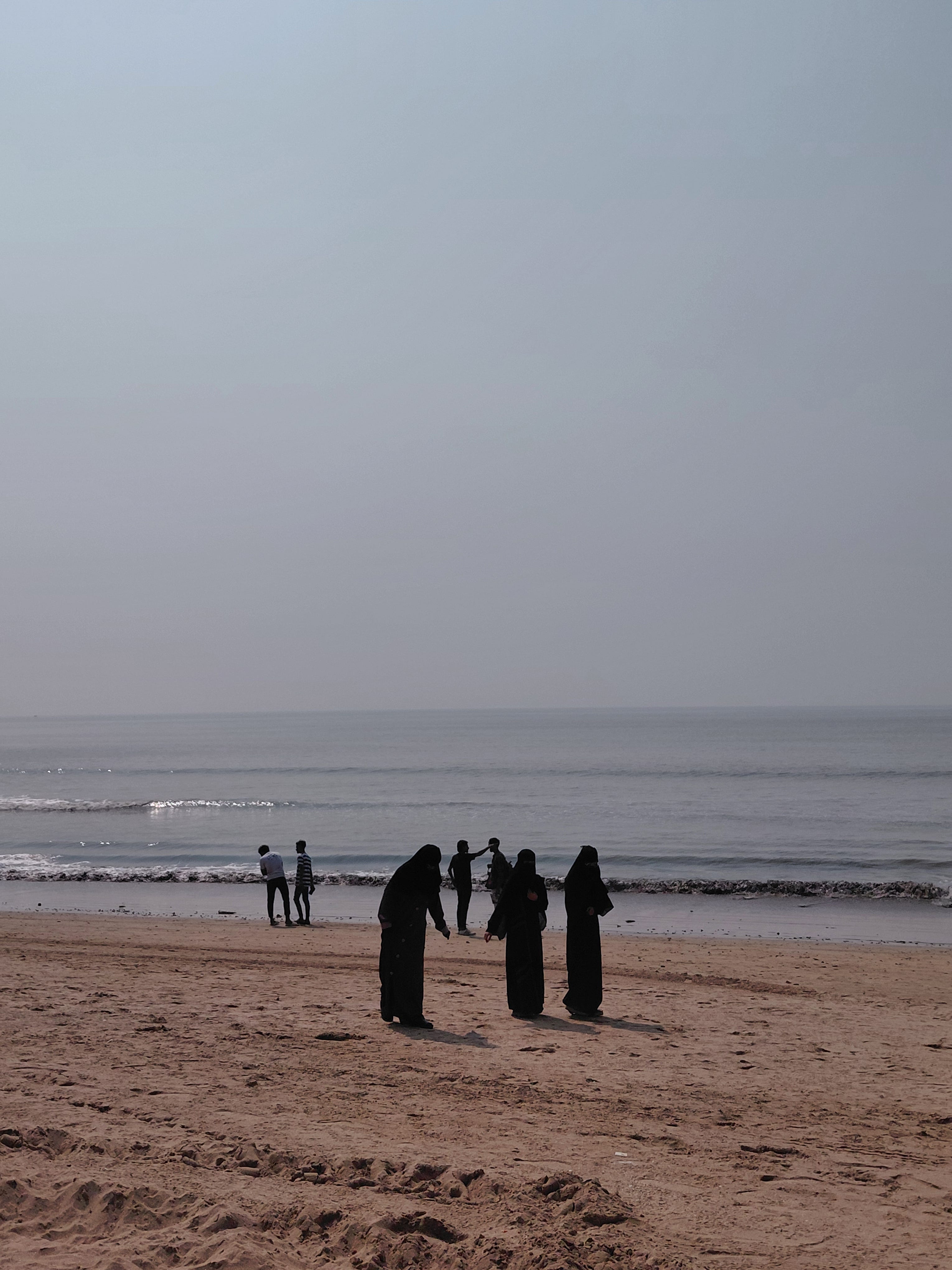 El metro me dejó en la playa de Mumbai, donde tres adolescentes musulmanas jugaban.
